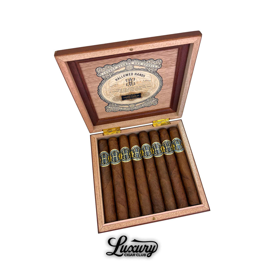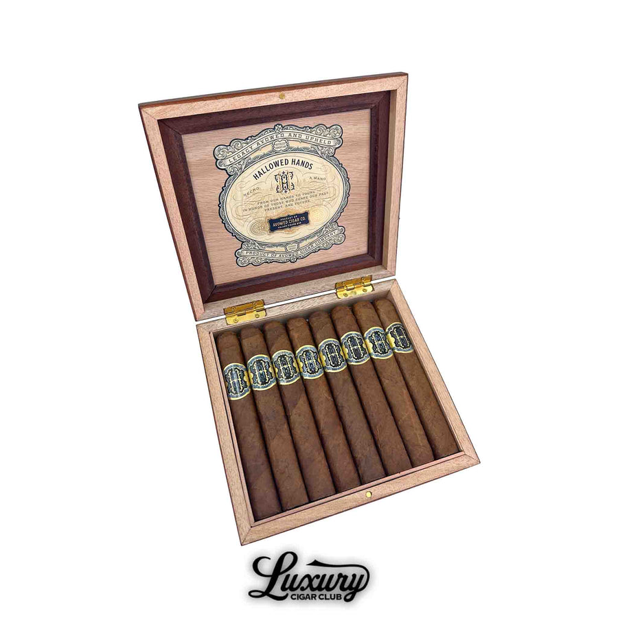 Hallowed Hands debuts in three vitolas, including a Corona Gorda (5 3/4 x 46), a Toro (6 x 52), and a Box-Pressed Robusto (5 3/4 x 50), notably the first box-pressed size ever released by Avowed. Boxes are packaged in counts of 15.