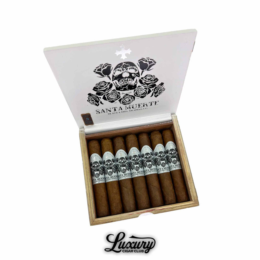 Santa Muerte is BACK and officially reclaims its place as one of the most requested returns in the Black Label Trading Co. lineup. Once an archived, limited-release favorite, Santa Muerte now delivers everything BLTC fans chase: signature strength, refined sweetness, and charred wood depth; all wrapped in a sleek Ecuadorian Habano leaf that sets the stage for a rich, layered smoke.