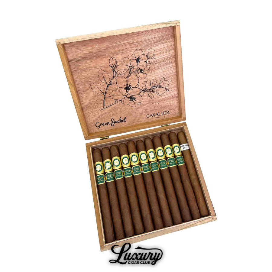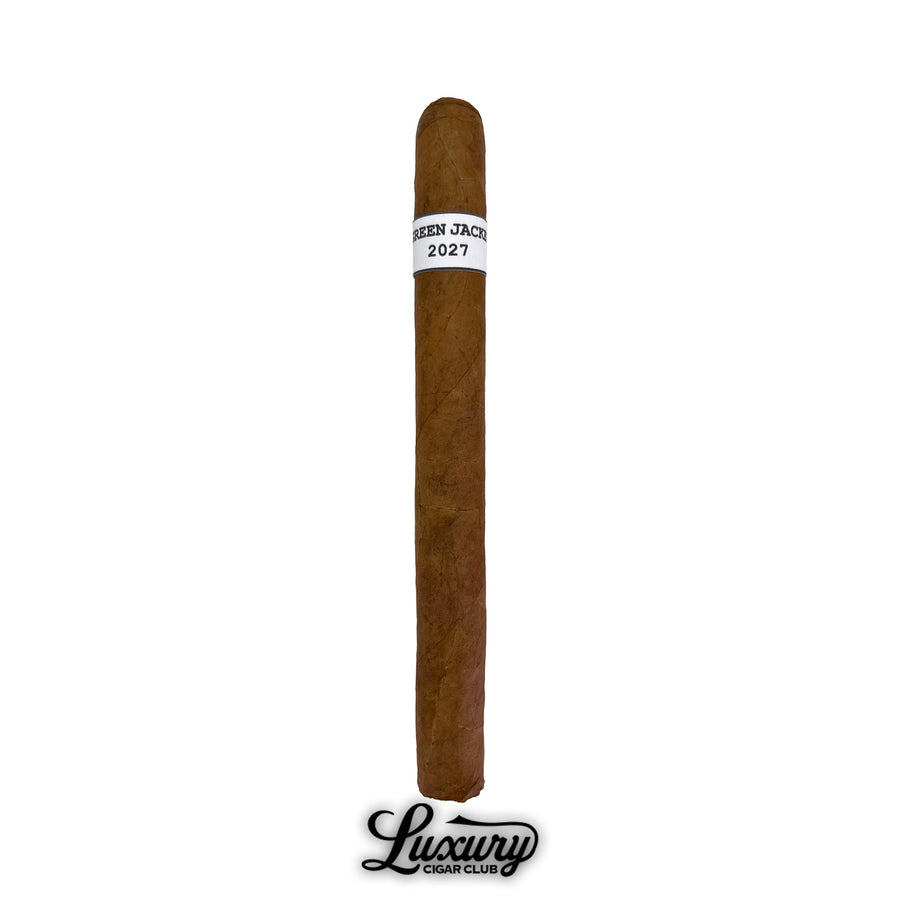 The bonus cigar (only included in full box), labeled The Green Jacket “Muestra 2027”, is also a 7 x 47 Churchill but features a Honduran wrapper and binder with a filler blend from Honduras, Nicaragua, Paraguay, and Sumatra. It is distinguished by a plain factory band to separate it from the primary release.