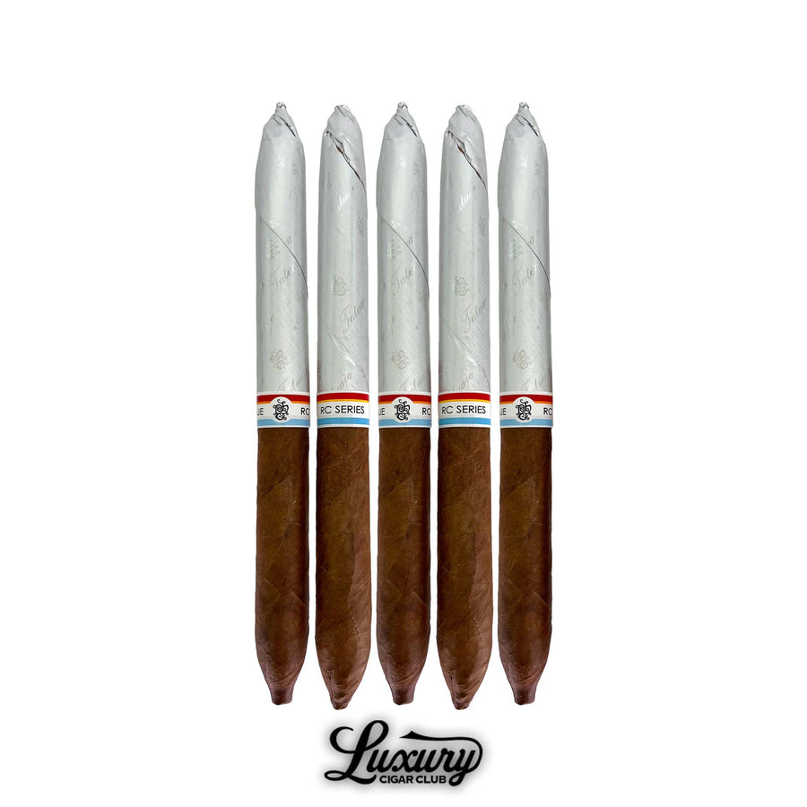 Measuring 9 1/8 x 55, the RC 233 is named for its length in millimeters and wrapped partly in silver foil to evoke vintage Havana tradition. It is built entirely from Nicaraguan tobaccos, including a Nicaraguan Corojo 99 wrapper, Nicaraguan binder, and Nicaraguan filler, producing a smooth progression of earthy richness, subtle sweetness, and layered spice.