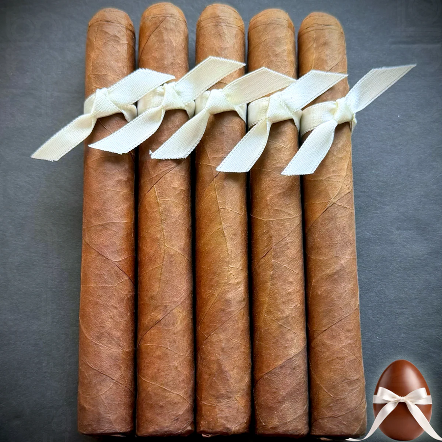 MILK CHOCOLATE EASTER EGG '26 is a full-bodied, med/full-strength 6.25x50 toro-extra Wrapper is a luscious and chocolatey 12-year-aged Habano Maduro leaf. Binder and filler tobaccos will remain a closely guarded secret...but all tobaccos are 4-12 years aged!