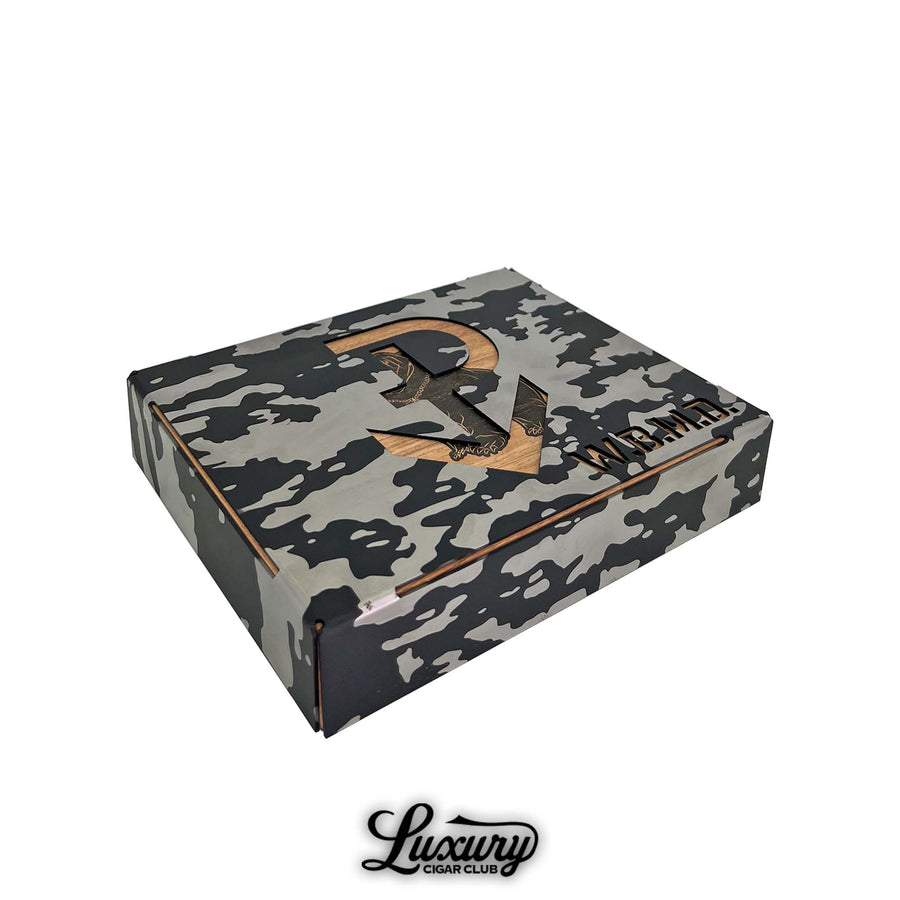 This year’s edition breaks entirely from past packaging traditions, arriving in a dark, camouflage-painted metal sleeve designed with built-in mounting hardware for collectors who want to display it on the wall. Completing the transformation, each cigar is dressed in a sleek, all-black band, an aesthetic shift that mirrors the cigar’s intense, militaristic theme.