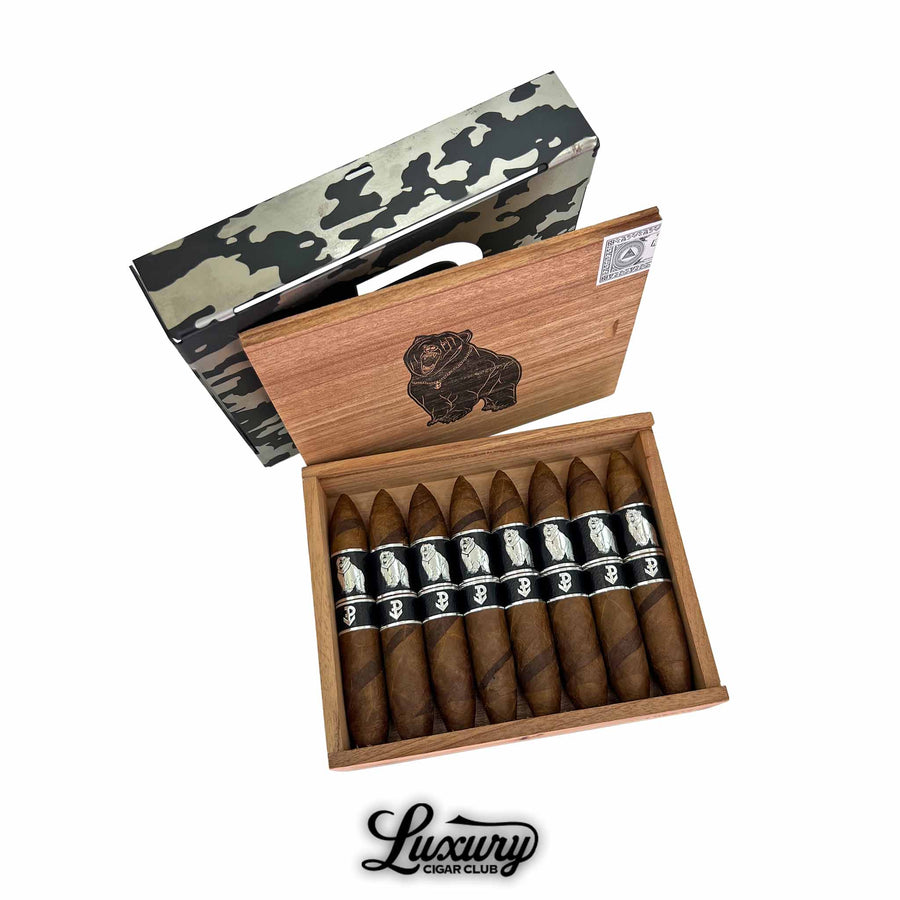 Its dual Ecuadorian Habano and Mexican San Andrés wrappers spiral together in a striking twirl, encasing an Indonesian binder and a potent blend of Dominican and Nicaraguan fillers crafted at Fábrica de Tabacos Nica Sueño S.A. in Estelí, Nicaragua. Production is capped at just 1,000 boxes of eight cigars, roughly 250 fewer than initially planned, making this one of the rarest War Bear releases to date.