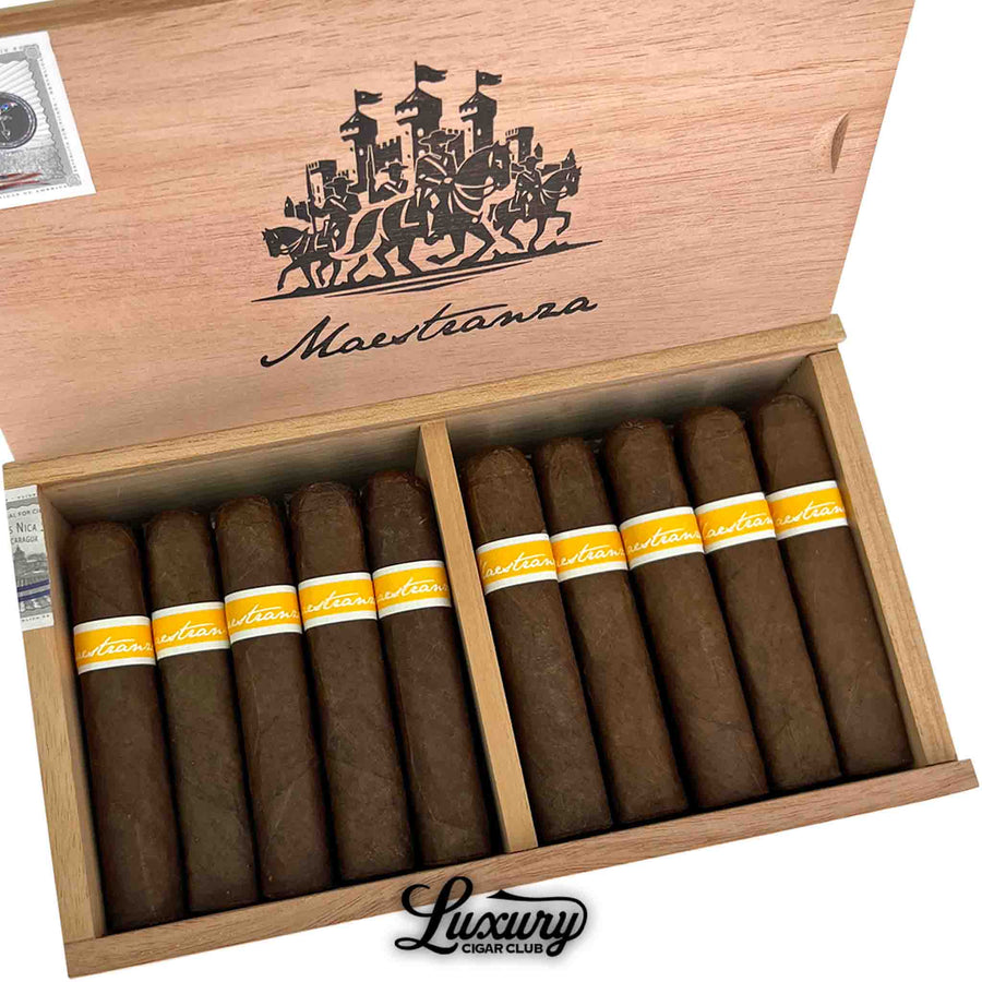RoMa's newest core line is here. Maestranza is a full-bodied beauty bursting with chocolate, earth, and espresso notes, with a cherry sweetness on the retrohale. This cigar uses a dark and oily "Spanish Market Selection" Rosado M.San wrapper.