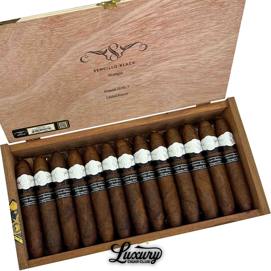 Sencillo Black is a meticulously crafted medium-plus cigar built around five distinct tobaccos, delivering balance, depth, and complexity without overwhelming the palate.
