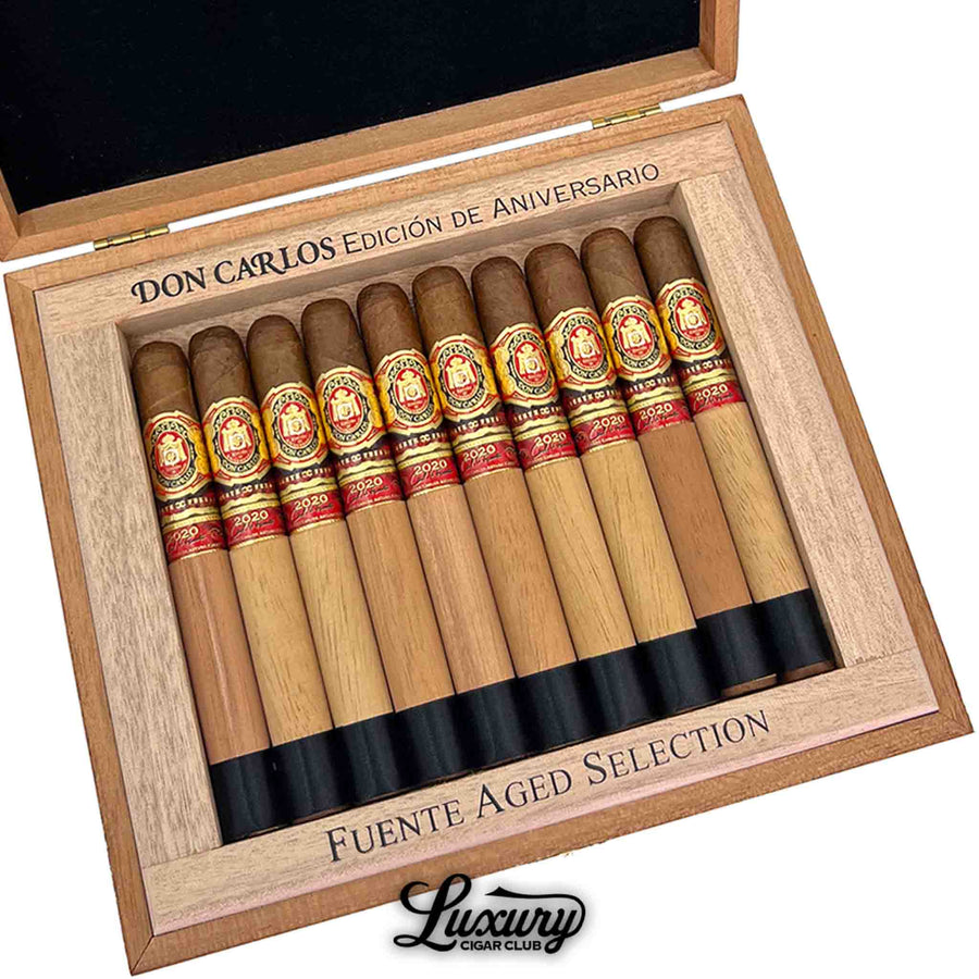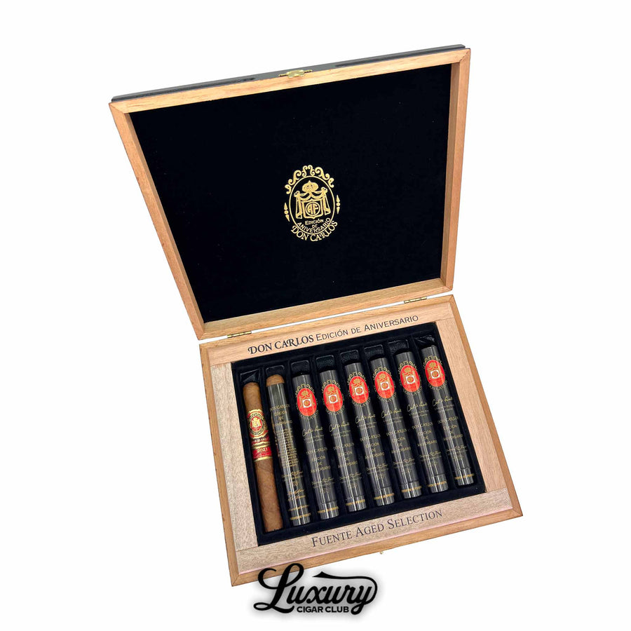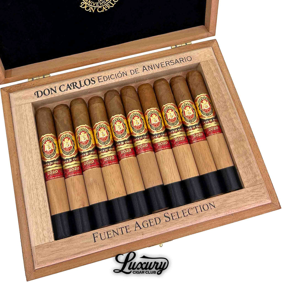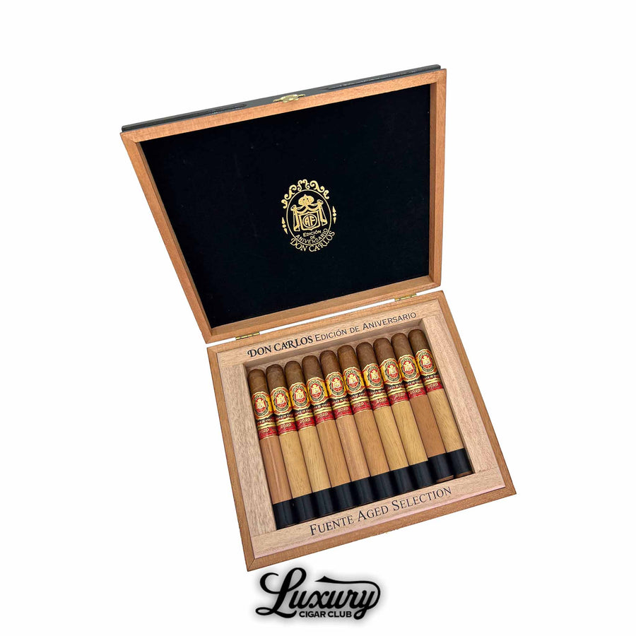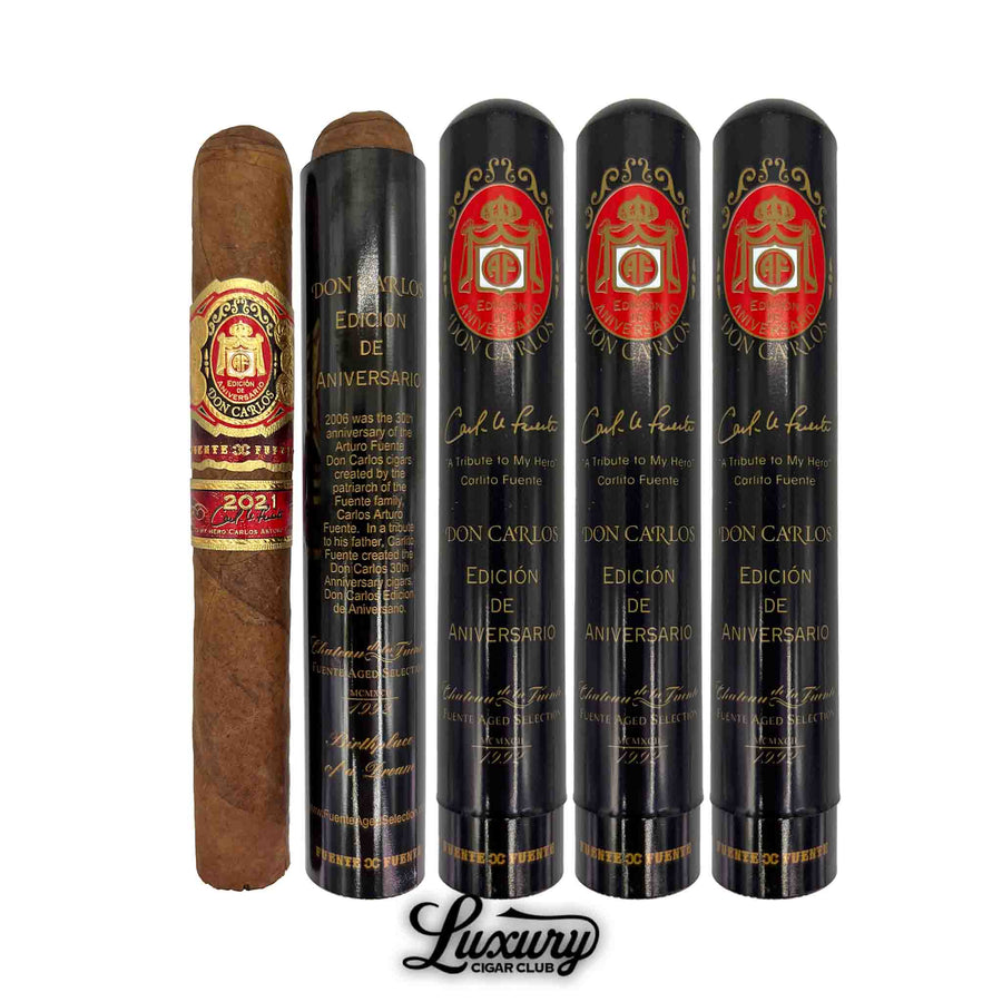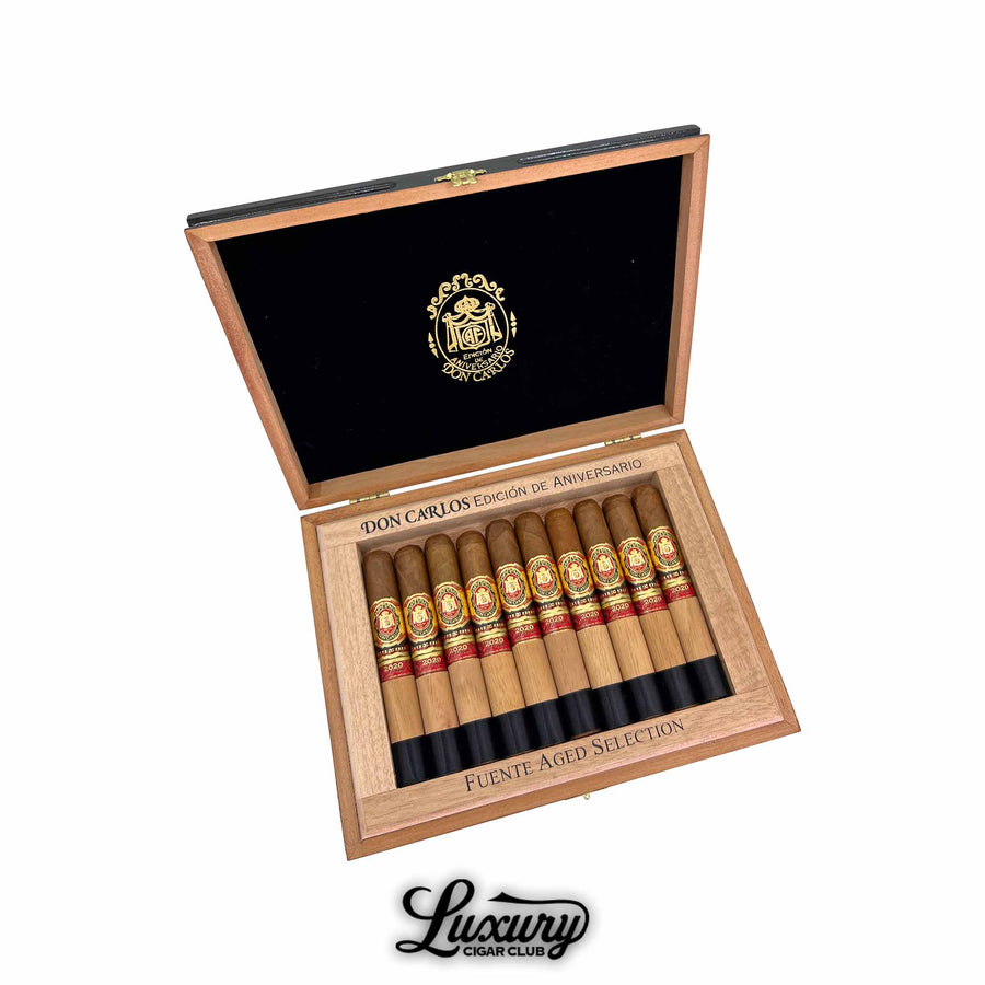 The Don Carlos Edición de Aniversario was created in 2006 by Carlito Fuente Jr. as a tribute to his father, Carlos Fuente Sr., honoring the 30th anniversary of the original Don Carlos line. This special release reflects decades of craftsmanship and the Fuente family’s dedication to producing some of the finest cigars in the world.